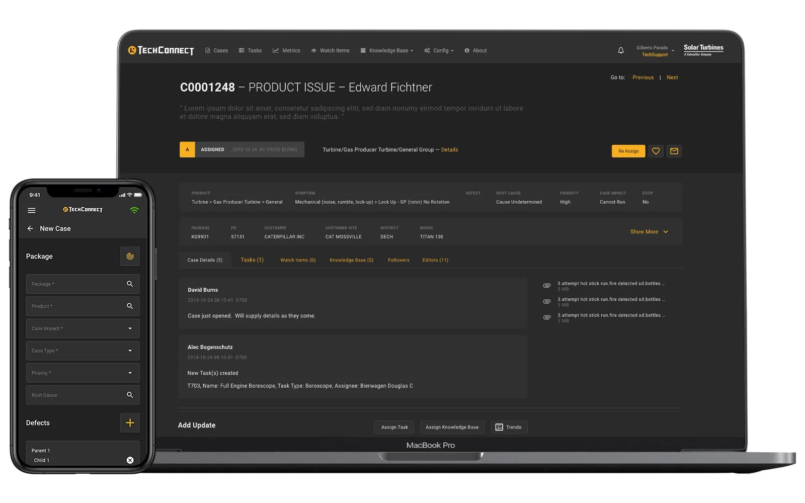 TechConnect was created as a turbo machinery problem resolution tool. Through its mobile extension, field reps can create and upload turbo machinery problem cases, adding to a common repository of field cases. The web app connects field reps, technical support managers, and subject matter experts so that, together, they can track, assess, contribute, and ultimately build a common knowledge bank.